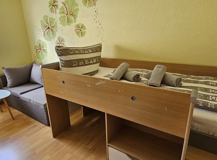 Weiterhin steht ein zusätzlicher Raum zur Verfügung, welcher als Kinderzimmer oder Büro genutzt werden kann.