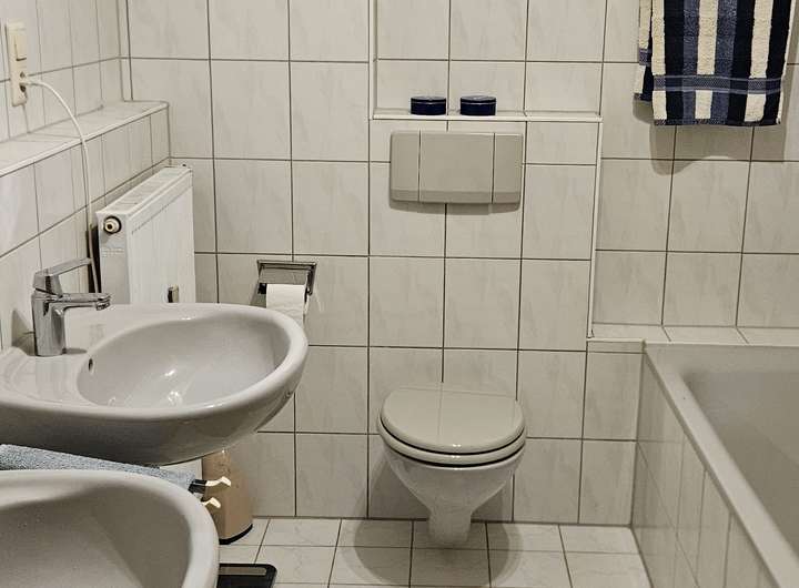 Diese helle, geräumige 3-Zimmer Erdgeschosswohnung mit einer Größe von 90m² befindet sich in einer sehr ruhigen Wohnlage direkt am Ettenbach. Sie verfügt über ein Gästebad sowie ein großes Badezimmer mit zwei Waschbecken, einer Dusche und einer Badewanne. Das großzügige Schlafzimmer bietet viel Platz.