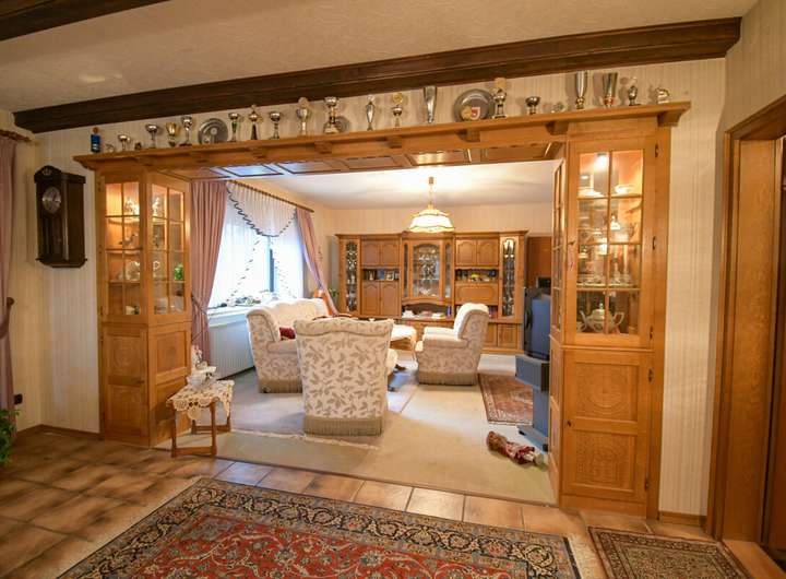 Im Erdgeschoss empfängt Sie eine zentrale Diele. Von hier aus öffnen sich der große Wohnbereich sowie der sehr großzügige Wintergarten mit weitem Blick in den Garten. Die Küche mit Essplatz ist praktisch geschnitten und bietet Raum für eine moderne Wohnküche. Ein Schlafzimmer auf dieser Ebene ermöglicht komfortables Wohnen, ergänzt durch ein weiteres, vielseitig nutzbares Zimmer, etwa als Büro oder Gästezimmer. Tageslichtbad und Gäste-WC sowie Abstell- und Hauswirtschaftsflächen runden das Erdgeschoss ab.