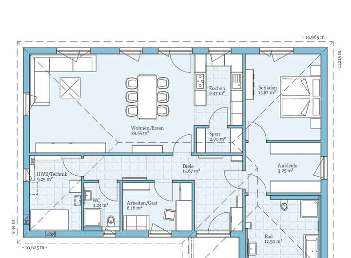 Der Grundriss ist flexibel — Architektur, Raumaufteilung und Ausstattung werden individuell geplant.