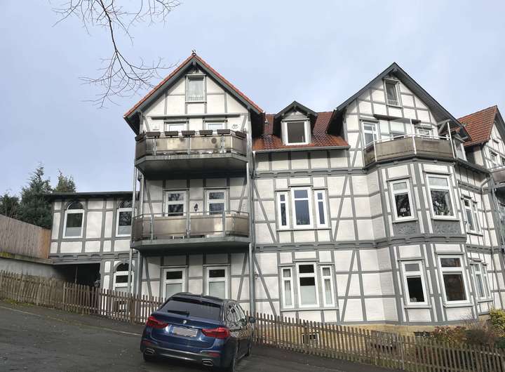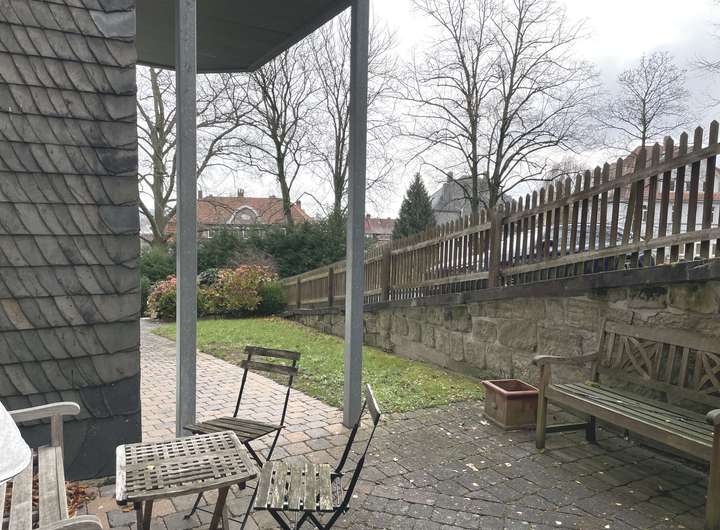 In bevorzugter, stadtnaher Wohnlage am Steinberg „thront“ das imposante, ansprechend modernisierte Fachwerk-Gebäude oberhalb der vorbeiführenden Anwohnerstraße und bietet bereits vom Erdgeschoss und aus den Gärten schöne Ausblicke über die Stadt. In fußläufiger Entfernung liegen die lebendige Altstadt mit zahlreichen Einkaufsmöglichkeiten, kulinarischen und kulturellen Angeboten, der Bahnhof, die Natur des Steinbergs – kurz: eine Umgebung zum Wohlfühlen.