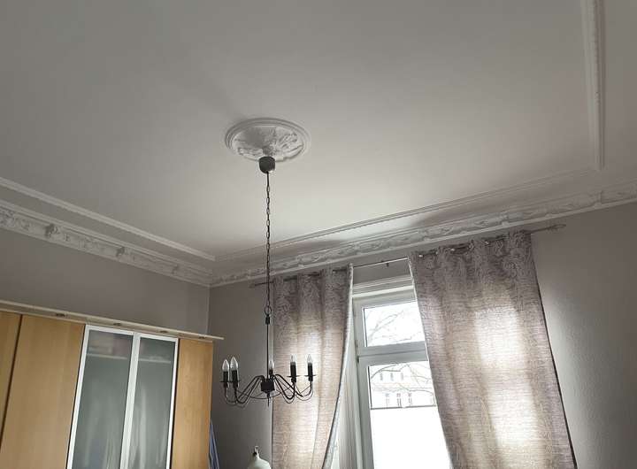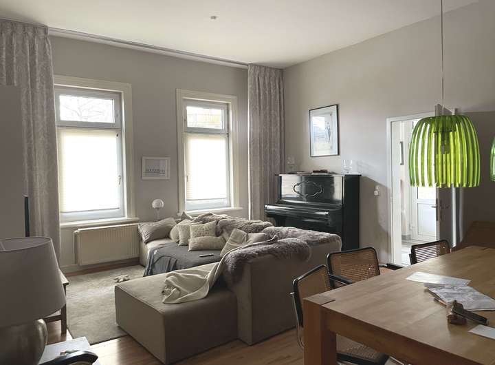 Eine geräumige, auf drei Seiten mit Fenstern versehene Eingangsdiele ist dem angrenzenden, gut 30 m² großen Wohnraum vorgelagert. Von hier über einen Zwischenflur sind das ebenfalls sehr große Schlafzimmer mit Stuckelementen an der Decke, das innenliegende Gäste-Bad mit Dusche sowie die Küche separat begehbar. Die Küche ist mit einer Einbauküche ausgestattet und verfügt ganz wunderbar über einen direkten Ausgang in den eigenen, rückseitigen Garten. Ein zweiter Flur verbindet die beiden kleineren Wohnräume sowie das Tageslichtbadezimmer mit den anderen Räumlichkeiten.