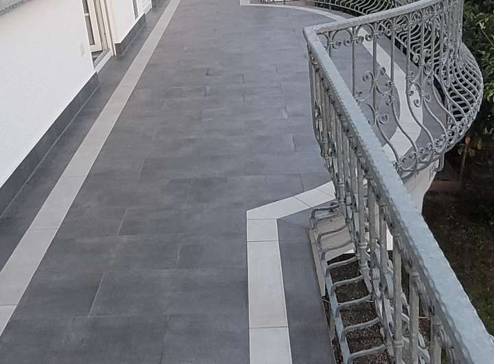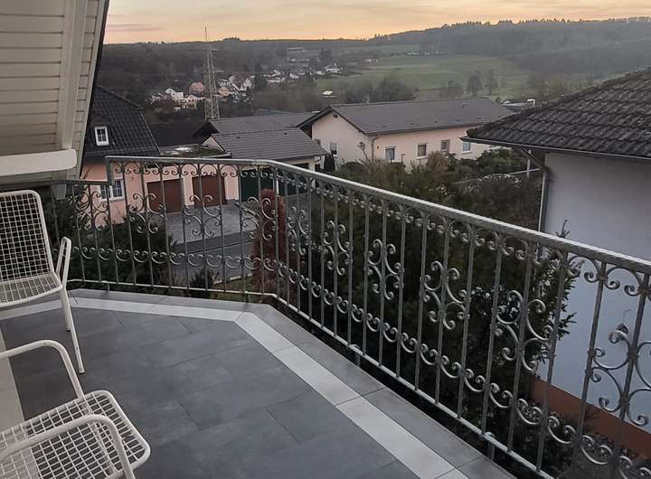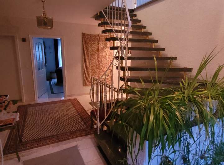 Im 1. OG: 3 Zimmer, Bad, Gäste WC, Einbauküche, Speisekammer und getrennte Putzkammer. Der Wohn- und Essbereich erstreckt sich über ca. 38 m² und besitzt einen, ebenfalls vom Schlafzimmer aus zu nutzenden, Kamin. Die Fußböden sind in Marmor und Granit ausgelegt. Auf der gesamten Vorderseite des Hauses befindet sich ein ca. 25 m² großer Südbalkon.