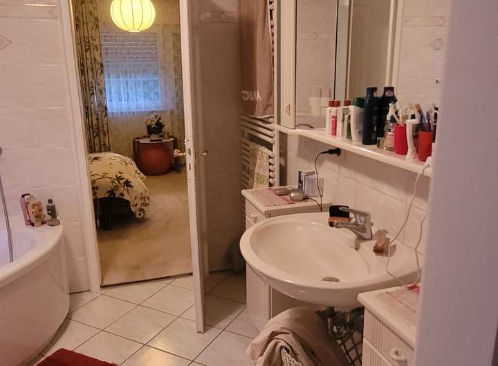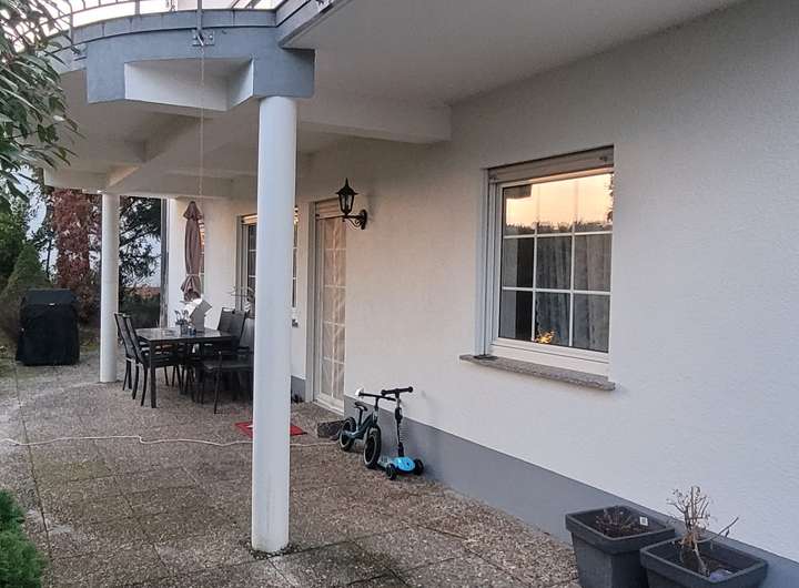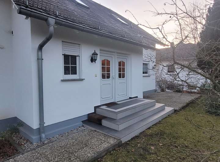 79 m² Wohnfläche, 3 Zimmer, Küche, Bad, Zentralheizung, Innen- und Außenkeller, überdachte Terrasse, großer Gartenanteil mit Spielwiese; geeignet als Wohnung für Eltern, Großeltern oder sonstige Verwandte oder als Büro- oder Praxisräume; z.Zt. ist es bis 2028 vermietet.