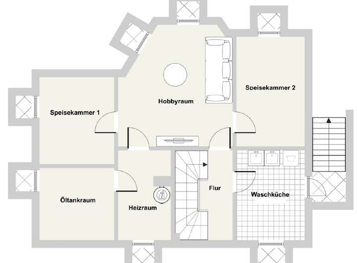 - Vollkeller mit Hobbyraum, Speisekammern und Waschküche