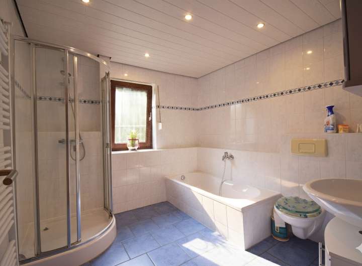 Das großzügig geschnittene Tageslichtbad sorgt mit seiner klaren Gestaltung für Komfort im Alltag. Technisch wurde das Haus bereits in vielen Bereichen modernisiert: Die Gasheizung von 2020, die überwiegend vorhandene Dämmung sowie überwiegend neuwertige Fenster (größtenteils 3-fach min. 2-fach verglast) schaffen ein angenehmes und energieeffizientes Raumklima. Elektrische Rolläden erhöhen den Wohnkomfort zusätzlich.