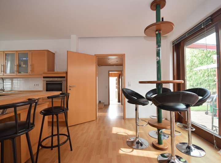 Im Mittelpunkt des Wohnbereichs steht der Kamin, perfekt für entspannte Abende und ein warmes, einladendes Ambiente. Die gepflegte Einbauküche aus Buche (Echtholz) bietet viel Stauraum und ist ideal für alle, die gerne kochen. Durch den lichtdurchfluteten Wintergarten genießen Sie zu jeder Jahreszeit einen besonderen Platz im Haus. Ein echtes Highlight für sonnige Stunden oder entspannte Momente mit Blick in den Garten.