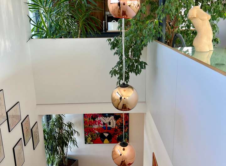Die durchdachte Raumaufteilung über mehrere Ebenen sowie die Kombination aus hochwertigen Materialien und modernen Details verleihen dem Haus eine besondere Atmosphäre. Schlaf- und Wohnräume sowie der Gartenbereich sind nach Süden ausgerichtet. Das Treppenhaus wurde auf der Nordseite des Hauses platziert – so geht kein wertvoller Wohnraum verloren.
