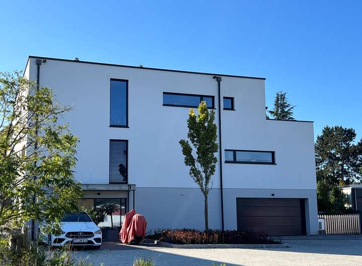 Dieses Architektenhaus wurde 2018 mit einer außergewöhnlichen Architektur über drei Etagen im Bauhausstil errichtet. Klare Linien, Transparenz und Ästhetik bestimmen die Gesamtanmutung dieses offenen und lichtdurchfluteten Einfamilienhauses, welches durch wohngesunde, ökologische Bauweise sowie durch nachhaltige und zeitlose Eleganz überzeugt.