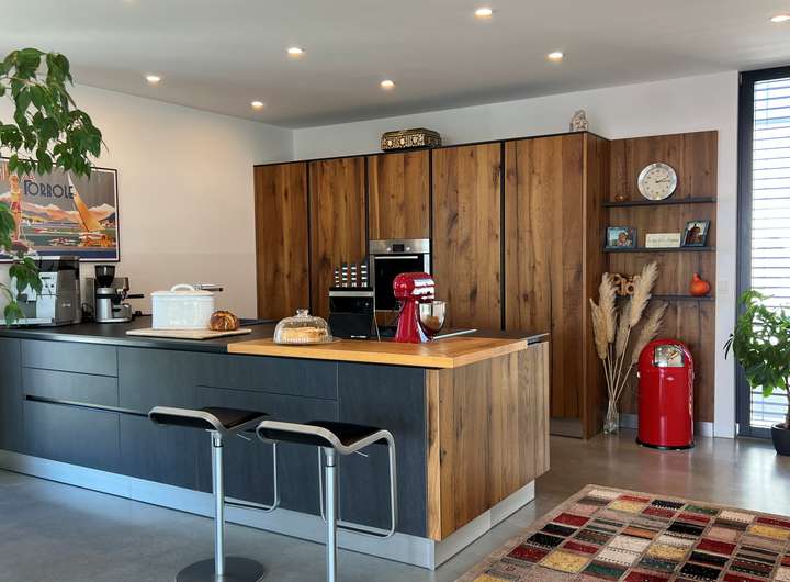 Die hochwertige Einbauküche wird Sie mit ihrer Vollausstattung, der edlen Holzausführung und der stilvollen Optik begeistern. Bodentiefe, großflächige Fensterfronten garantieren lichtdurchflutete Wohnräume mit hohem Wohlfühlfaktor und veredeln das Ambiente durch das natürliche, abwechslungsreiche Lichtspiel der wechselnden Jahreszeiten.