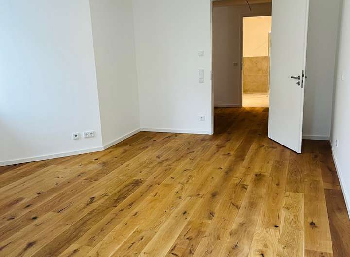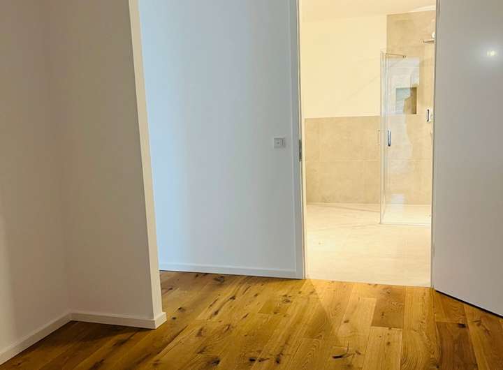 Die hochwertige Ausstattung des Apartments lässt keine Wünsche offen: Moderne, großformatige Fliesen wirken elegant und edel. Das schicke Eichenholzparkett ergänzt dies mit einer behaglichen Gemütlichkeit. Die raumweise regelbare Fußbodenheizung, die im Sommer auch zur Kühlung eingesetzt werden kann, sorgt stets für angenehme Temperaturen. Unterstützt wird dies durch die 3-fach verglasten Fensterfronten mit Aluminium-Rollläden sowie die energieeffiziente Bauweise im Neubaustandard.