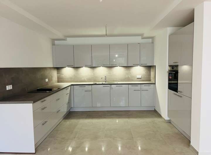 Die schicke, offen gehaltene und sehr geräumige Einbauküche ist selbstverständlich bereits im Mietpreis enthalten. Hochwertige E-Geräte wie die Kühl-/Gefrierkombi, der Induktionsherd mit Muldenlüfter, die Spülmaschine oder der in Sichthöhe befindliche Backofen sorgen für zusätzlichen Komfort.