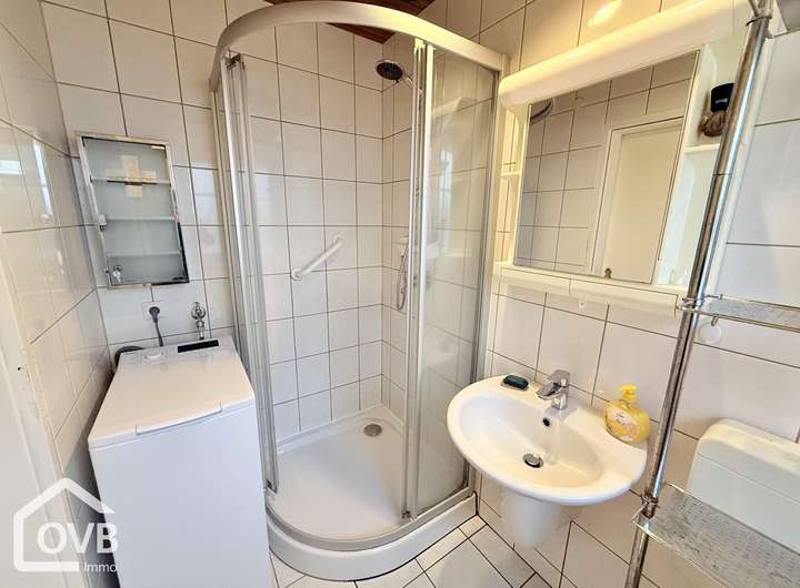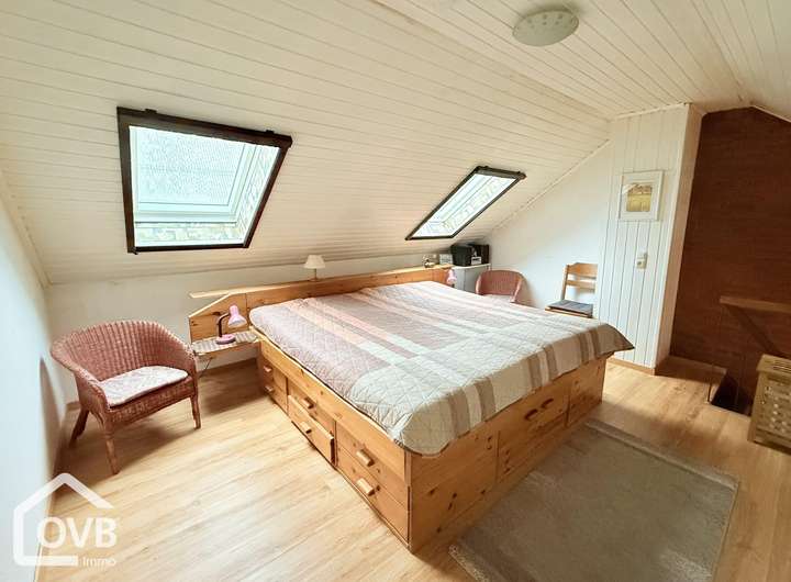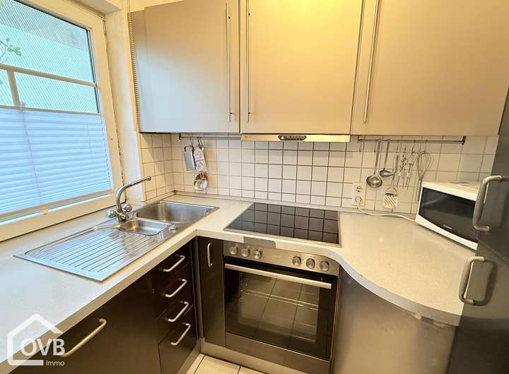 Die separate Küche ist funktional gestaltet. Ein helles, modernes Duschbad und der Eingangsbereich vervollständigen die untere Etage. Im Dachgeschoss befindet sich das ruhige Schlafzimmer mit Doppelbett und praktischen Einbauschränken.