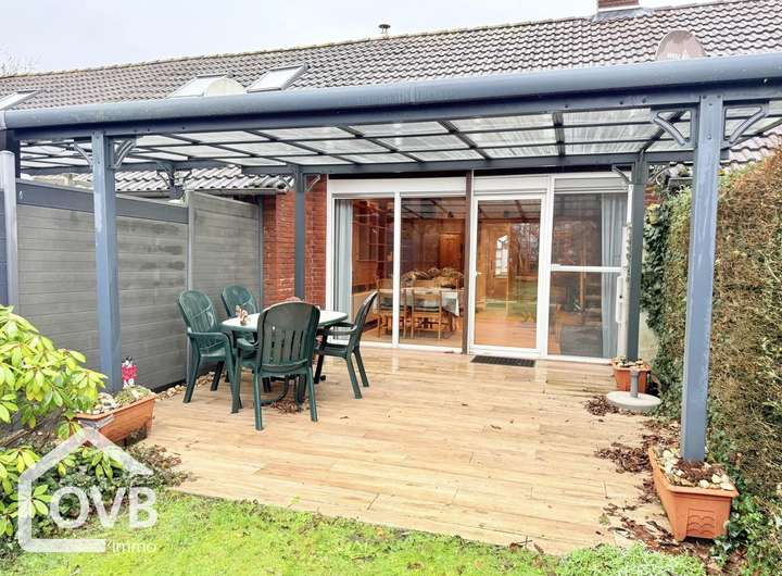 Der kleine Gartenanteil ist pflegeleicht. Eine geräumige und modern geflieste Terrasse mit Überdachung sorgt für einen schönen Platz im Freien mit Blick ins Grüne.