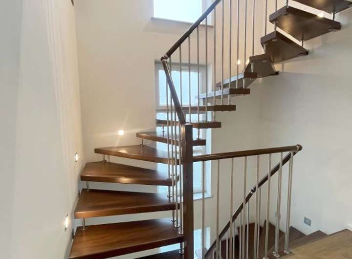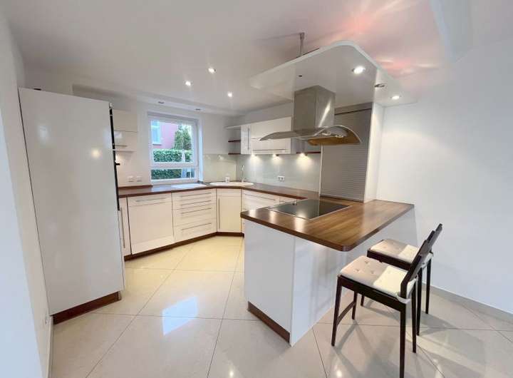 The ground floor features a bright open living and dining area with large windows that let in a lot of natural light. From here, you can access the terrace and the fenced garden, which is perfect for families, children, or pets.