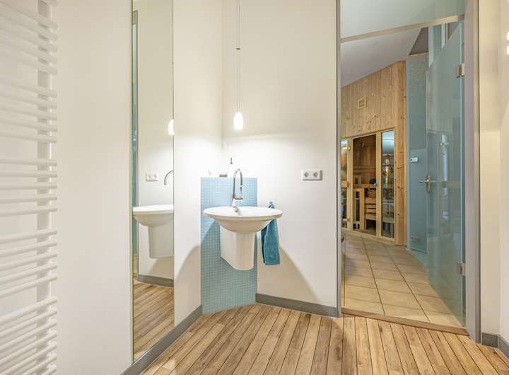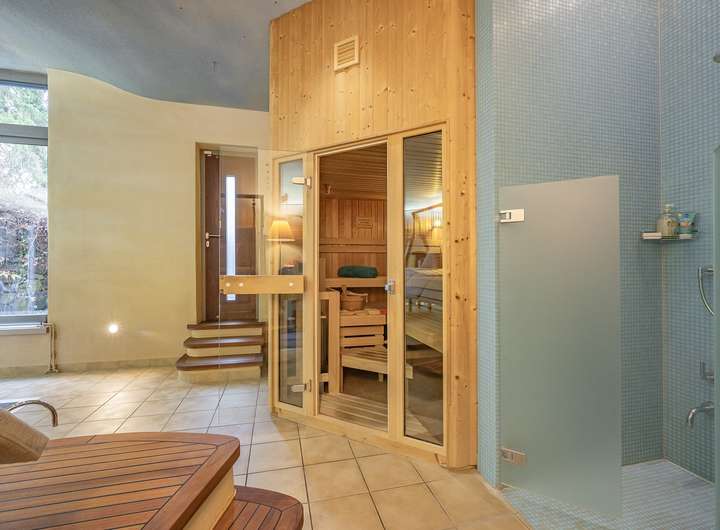 - Souterrain nutzbar als separate Wohneinheit (mit eigener Küche, Bad, Sauna und mehreren Zimmern) oder als Wellness-/Fitnessbereich