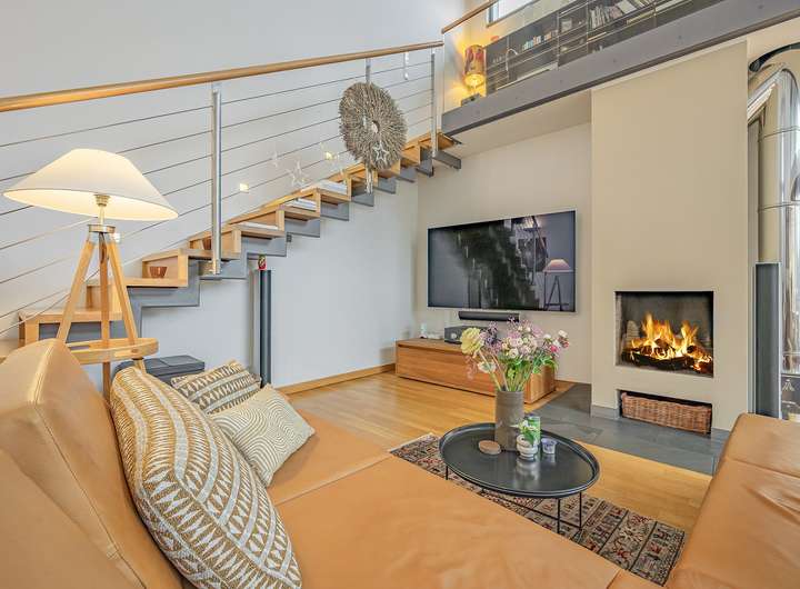 -Deckenhöhe bis zu 6,40 m und Kamin / besondere, einladende Atmosphäre