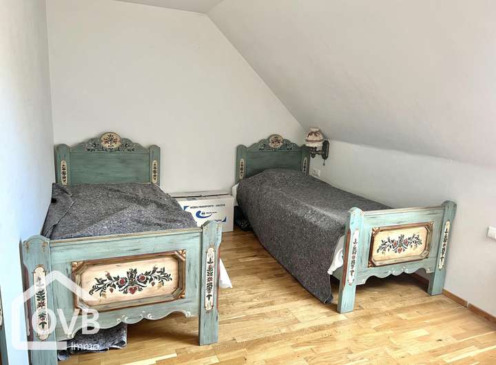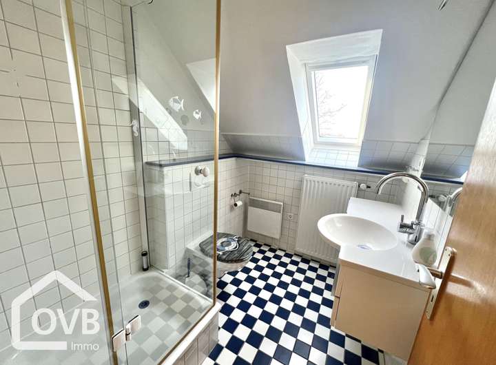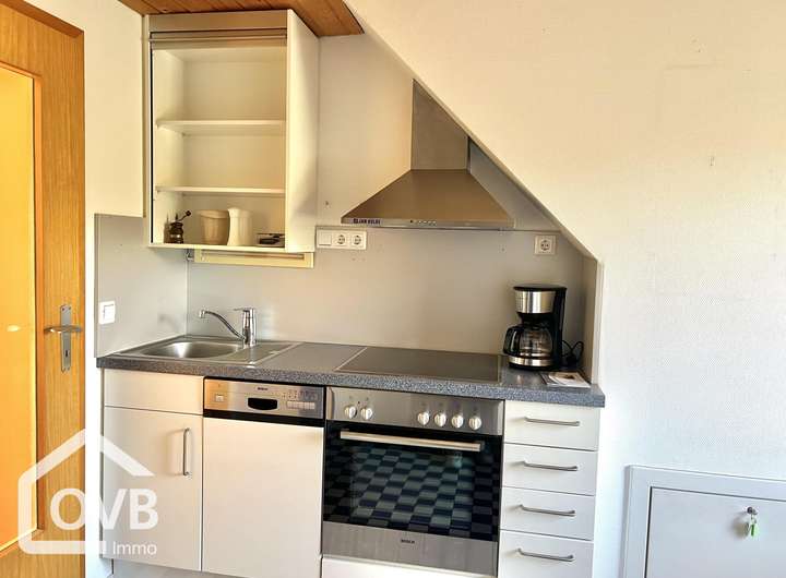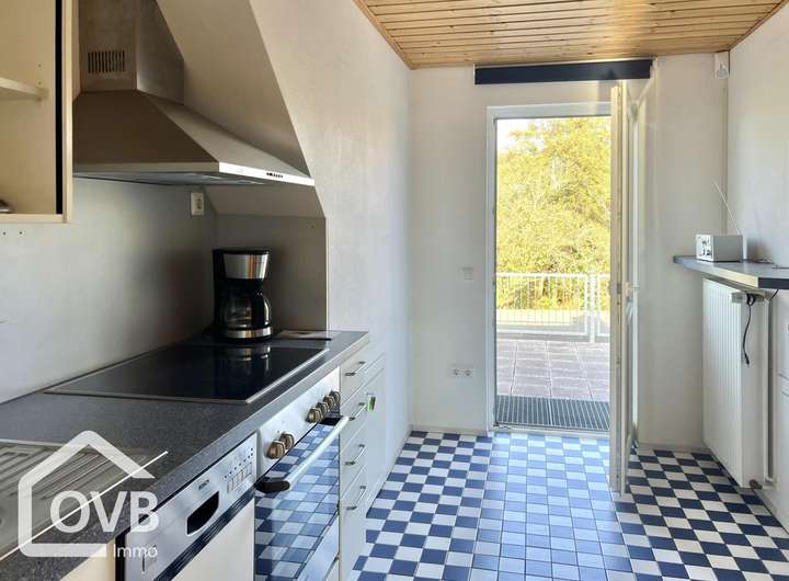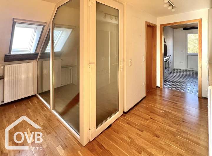 Die gemütliche Einliegerwohnung im Obergeschoss ist über einen separaten Zugang erreichbar und bietet alles, was man zum Wohnen braucht: Wohnzimmer, Küche, Schlafzimmer und ein modernes Bad. Ideal für Gäste, erwachsene Kinder oder zur Ferienvermietung – hier eröffnen sich vielseitige Nutzungsmöglichkeiten. Besonders hervorzuheben ist die große Dachterrasse mit herrlichem Ausblick über die umliegende Landschaft. Dank der gegenüberliegenden Ausrichtung zur Gartenterrasse genießen beide Wohnbereiche ihre Privatsphäre im Freien.