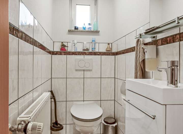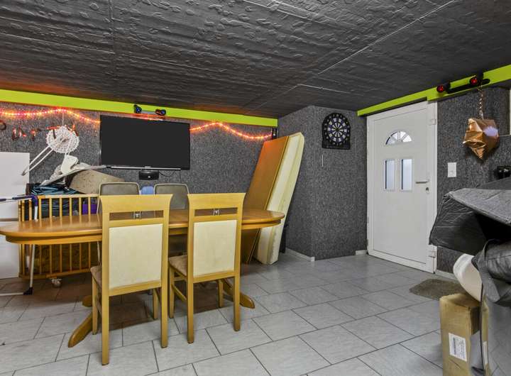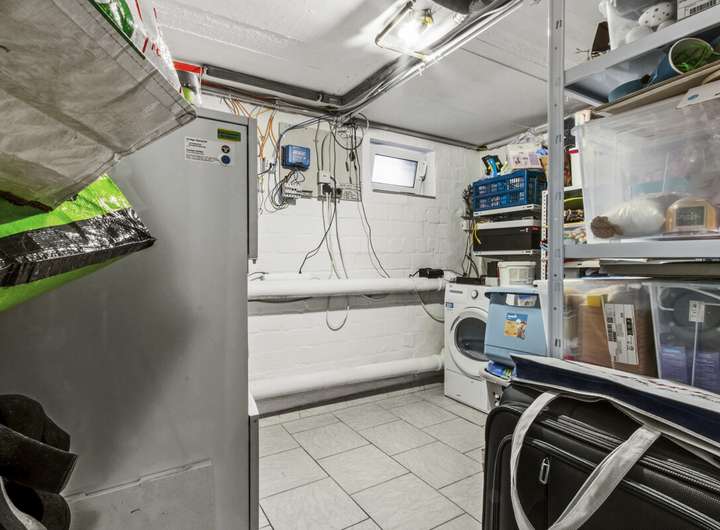 Im Kellergeschoss befinden sich ein Vorratsraum mit Anschluss für Waschmaschine und Trockner sowie die moderne Gasheizung der Marke Vaillant mit Warmwasserspeicher. Ebenfalls wurde hier ein Partykeller eingerichtet. Zusätzlich steht ein überdachter Seiteneingang zur Verfügung.