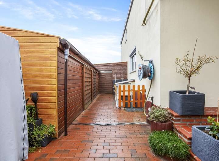 Das Haus wurde seit der Modernisierung stets vom Eigentümer selbst bewohnt, sehr pfleglich behandelt und befindet sich somit in einem tadelosen Zustand. Es bietet Familien ein attraktives Zuhause mit viel Platz, einem schönen Garten und einer ruhigen Wohnlage. Die Einfahrt vor dem Haus ist explizit nicht für Autos geeignet.