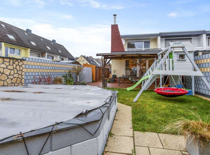 Dieses im Jahr 1973 erbaute Reihenendhaus wurde 2012 vollständig modernisiert und befindet sich in einem modernen und sehr gepflegten Zustand. Auf ca. 109m² Wohnfläche und vier Zimmern bietet das Haus Platz für die ganze Familie. Neben einem liebevoll angelegten Garten mit eingelassenem Pool gehören auch ein Keller mit Partyabteil, ein geräumiges Carport für das Motorad oder den Anhänger sowie eine Garage auf dem nahegelegenen Garagenhof zur Immobilie. Das 343m² große Grundstück überzeugt durch seine pflegeleichte Gestaltung und die tolle Lage in direkter Nähe zum Hasport See.