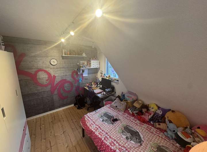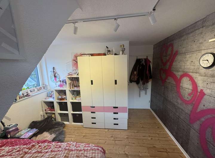 Im Dachgeschoss steht weiterer Platz zur Verfügung: Der vollständig gedämmte Spitzboden wird aktuell als Lagerfläche und zusätzlicher Spielbereich für die Kinder genutzt. Er ist nicht in die offizielle Wohnfläche eingerechnet, bietet aber wertvolle Flexibilität im Alltag.