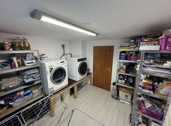 Auch das Untergeschoss bringt echten Mehrwert: Eine beheizte Waschküche mit Wasseranschluss erleichtert den Alltag, ein unbeheizter Vorratsraum schafft Platz für Vorräte, und ein beheizter Bereich eignet sich ideal für Hobbys oder Werkstattprojekte. Zusätzlich gibt es ein beheiztes Büro - perfekt fürs Homeoffice oder ruhiges Arbeiten abseits des Wohnbereichs.