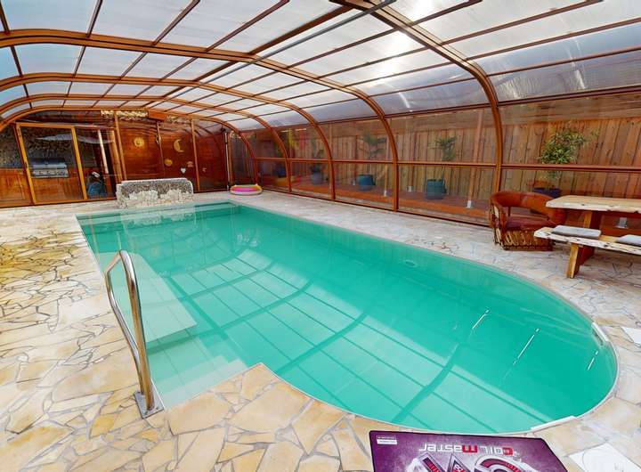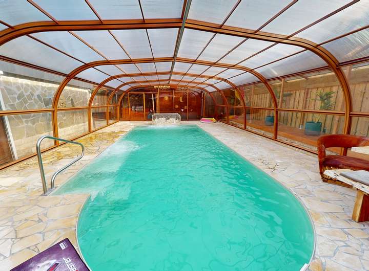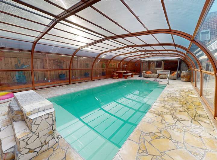 Große Poolanlage (9 × 4 m) mit überdachter Poolhalle (ca. 110 m²)