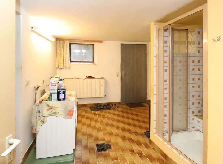Der Vollkeller lässt keine Wünsche offen. Im großzügigen Partyraum können Sie Ihre nächste Familienfeier planen. Diverse Abstellräume bieten Ihnen genug Lagerflächen. Basteln in der Werkstatt ist ebenfalls möglich. Des Weiteren bietet Ihnen der Keller eine Waschküche mit Dusche und WC und Ausgang in den Garten. Ein Heizungsraum rundet die Nutzflächen im KG ab.