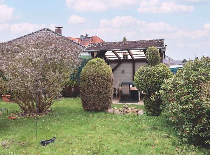 Im gemütlichen Garten haben Sie unterschiedliche Ruhepunkte. Ob im überdachten Freisitz oder im Pavillon. Genießen Sie hier Ihren Kaffee, das morgendliche Frühstück oder ein Gläschen Wein und schauen Ihren Kindern beim Ballspielen zu.