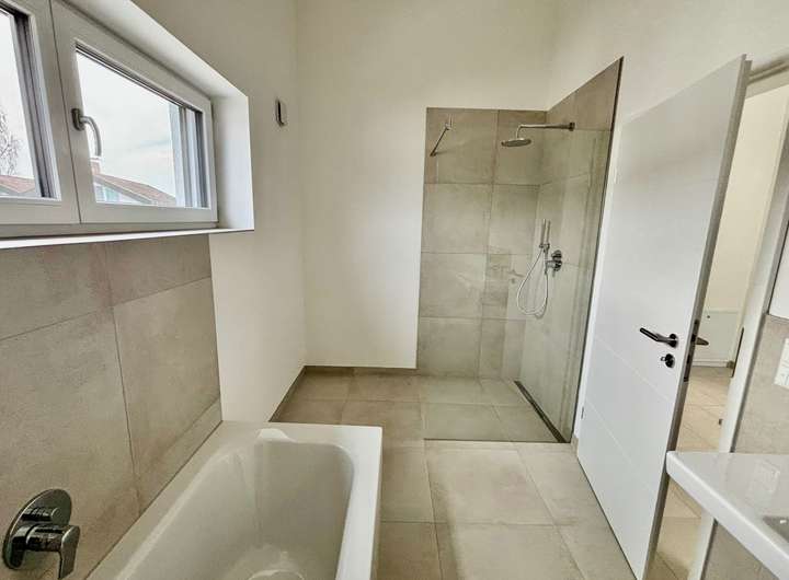 Die Doppelhaushälfte überzeugt durch eine gehobene Ausstattung und viele Details, die modernes Wohnen besonders angenehm machen. Zwei vollwertige Badezimmer sowie ein Gäste-WC, jeweils mit Fenster und hochwertigen Fliesen, sorgen für Komfort auf allen Etagen. Eine moderne Einbauküche mit sehr guter Ausstattung ist vorhanden und ist monatlich zu mieten. Elektrische Rollläden, eine Fußbodenheizung sowie Laminatböden in den Wohn- und Schlafräumen unterstreichen den hohen Wohnstandard.