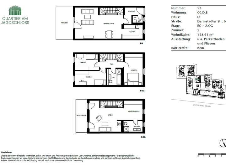 -Darmstadt 15 km / ca. 21 min. Pkw / 22 min. ÖPNV