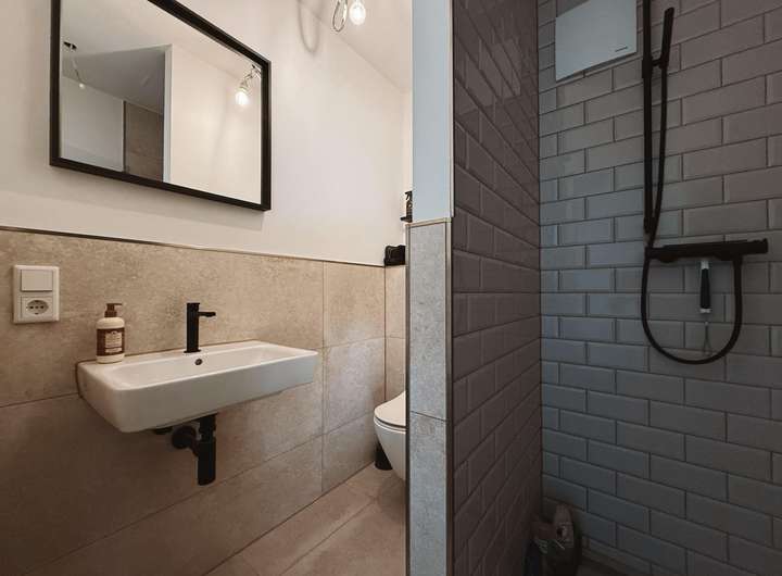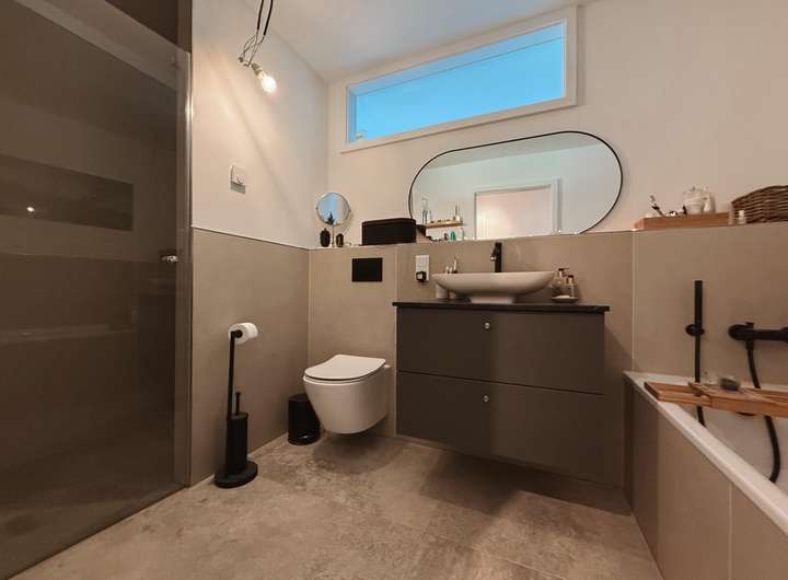 Zurück über die Diele erreichen Sie beide Badezimmer. Beide sind stilvoll gestaltet und überzeugen mit modernen und wohnlicher Ausstattung. Das kleinere Duschbad sorgt für einen erfrischenden Start in den Tag oder ein entspannendes Ritual am Abend. Während das Hauptbadezimmer mit einer zusätzlichen Badewanne ausgestattet wurde und so für entspannte Abende sorgt.