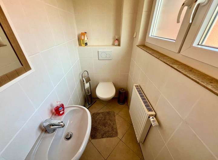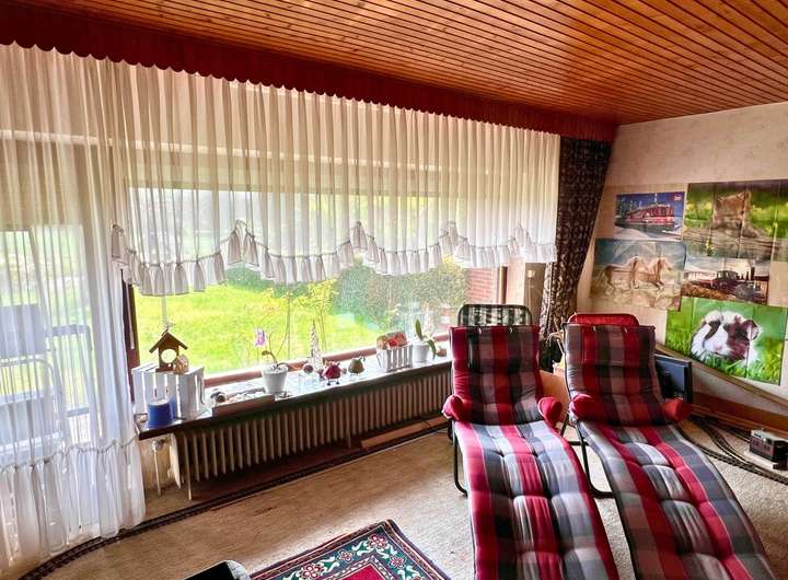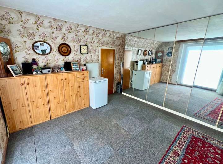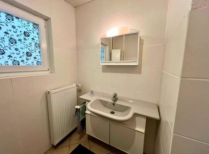 Im Erdgeschoss erwartet Sie ein helles Wohnzimmer mit modernen Heizkörpern (2015), eine funktionale Küche mit direktem Zugang zur Terrasse, ein modernisiertes Gäste-WC (2015) sowie ein praktischer Hauswirtschaftsraum (ebenfalls 2015). Ergänzt wird das Raumangebot durch einen Anbau aus dem Jahr 1974, der sich flexibel nutzen lässt – ob als zusätzliches Zimmer, Büro oder Hobbyraum.