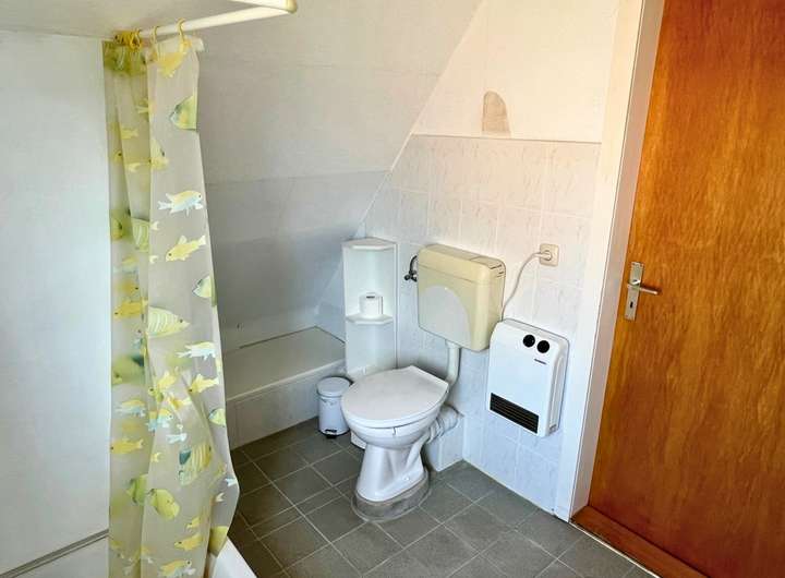 Über eine solide Holztreppe gelangen Sie ins Obergeschoss. Dort befinden sich zwei weitere Zimmer sowie ein Badezimmer mit Dusche, das 2012 modernisiert wurde.