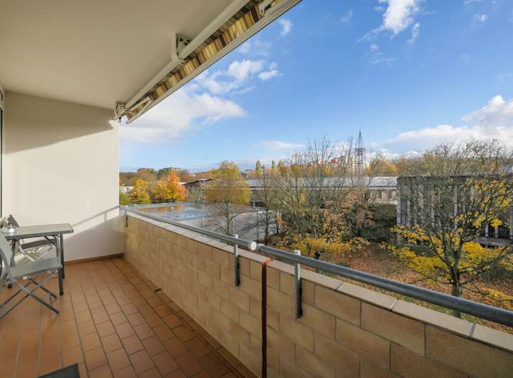 - Balkon: Genießen Sie entspannte Stunden auf dem sonnigen Balkon, der zum Verweilen einlädt, mit einem Blick ins Grüne! Markise vorhanden
