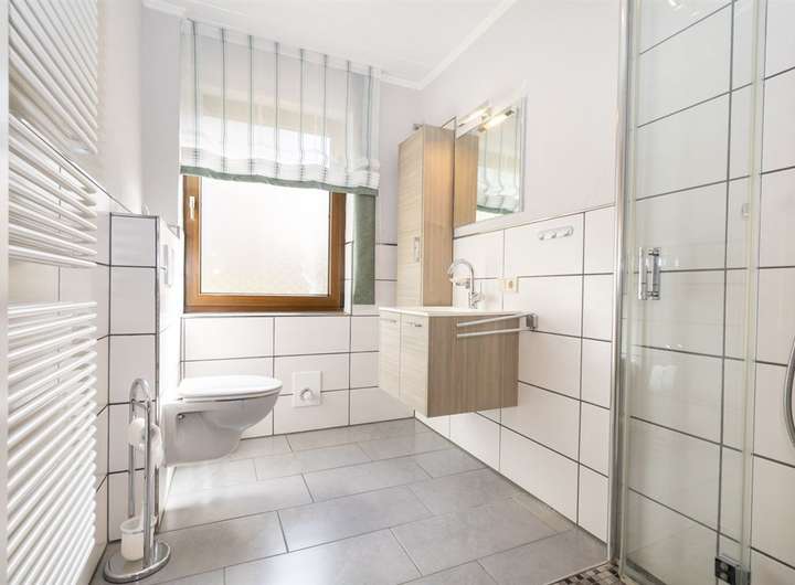 Die Erdgeschosswohnung überzeugt durch eine großzügige und helle Wohnküche, die viel Platz für eine gemütliche Sitzecke bietet und durch große Fenster angenehm belichtet ist. Die abgebildete Einbauküche im Mietpreis enthalten. Das angrenzende Wohnzimmer schafft mit seiner lichtdurchfluteten Atmosphäre einen komfortablen Wohnbereich. Ein gut geschnittenes Schlafzimmer sowie ein weiteres Zimmer, das sich ideal als Kinderzimmer, Gästezimmer oder Homeoffice eignet, bieten vielseitige Nutzungsmöglichkeiten. Das modernisierte, neuwertige Tageslichtbad ist mit einer bodentiefen Dusche, einem WC und einem Waschtisch ausgestattet. Ergänzt wird die Wohnfläche durch eine praktische Speisekammer und einen kleinen Abstellraum innerhalb der Wohnung. Besonders ansprechend ist der große Balkon über der Garage, der eine schöne Aussicht bietet und zum Entspannen einlädt. Zur Wohnung gehört außerdem ein Kellerraum; der Garten kann nach Absprache mitgenutzt werden. Beheizt wird das Haus durch eine moderne Öl-Brennwertheizung mit solarunterstützter Warmwasserbereitung, die für ein effizientes und zeitgemäßes Heizen sorgt.