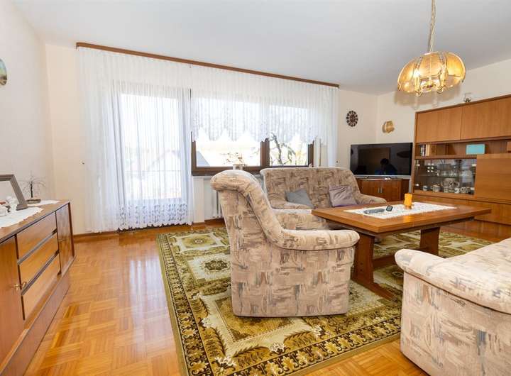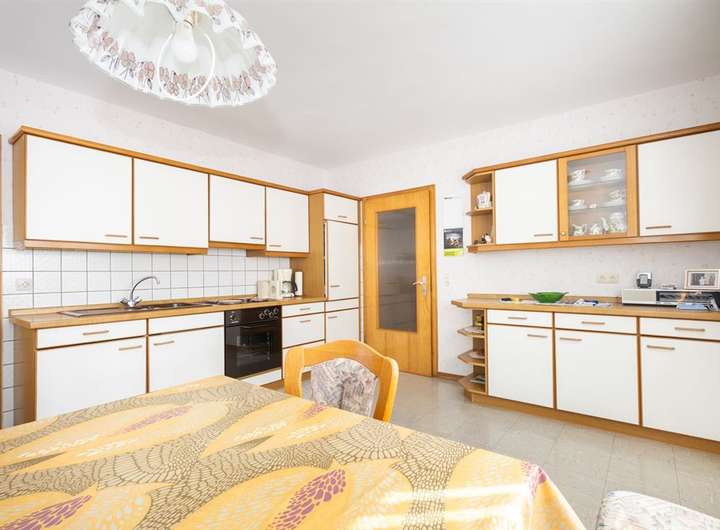 Die Wohnung überzeugt mit einer klaren Raumaufteilung, hellen Zimmern, einer großen Einbauküche und einem guten Gesamtzustand. Besonders hervorzuheben ist der große Balkon über der Garage, der eine schöne Aussicht bietet und zum Entspannen einlädt.
