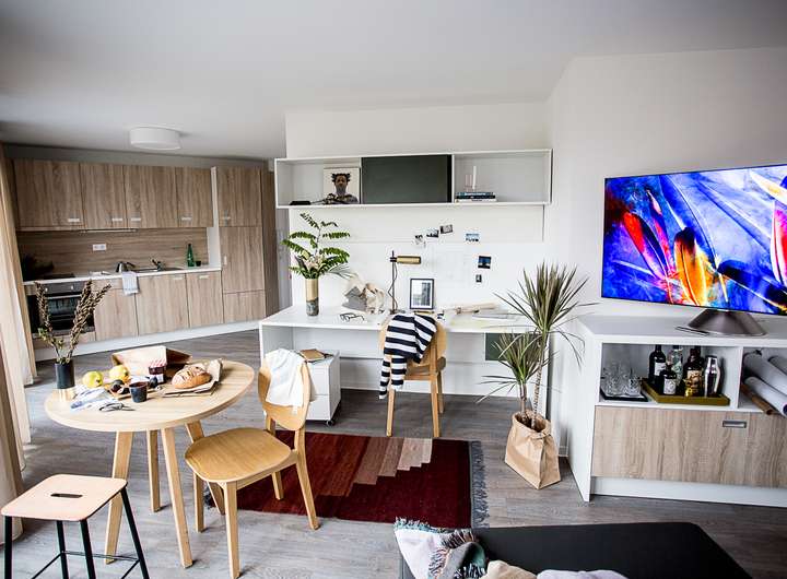 Apartments: Eigene Küche und eigenes Bad, hochwertig und modern möbliert, größtenteils mit Balkon oder (Dach-)Terrasse, teilweise barrierefrei