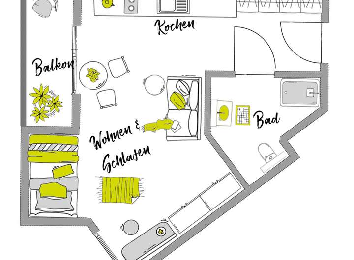 Bei der vorliegenden Anzeige handelt es sich um ein Beispiel-Apartment. Genauere Angaben zur Fläche, Mietpreise und Verfügbarkeiten sind unserer Webseite zu entnehmen.