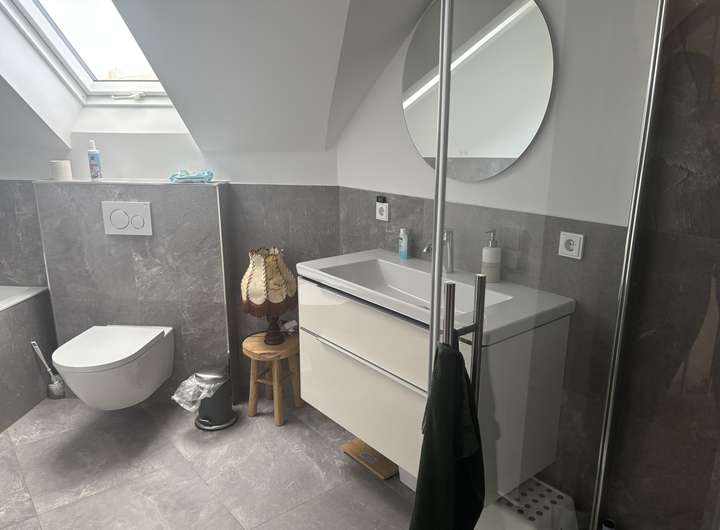 Das Obergeschoss bietet drei Schlafräume und das Vollbad. Sämtliche Räume sind gut belichtet und mit Vinylfußboden versehen. Das Bad wurde kürzlich modern renoviert und ist ausgestattet mit Fußbodenheizung, Wanne, Dusche, Waschtisch und WC und wird somit allen Anforderungen gerecht. Bedingt durch die Dachform und den hohen Drempel bieten sich sehr gute Möblierungsmöglichkeiten.