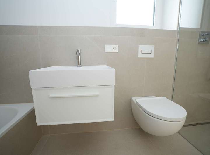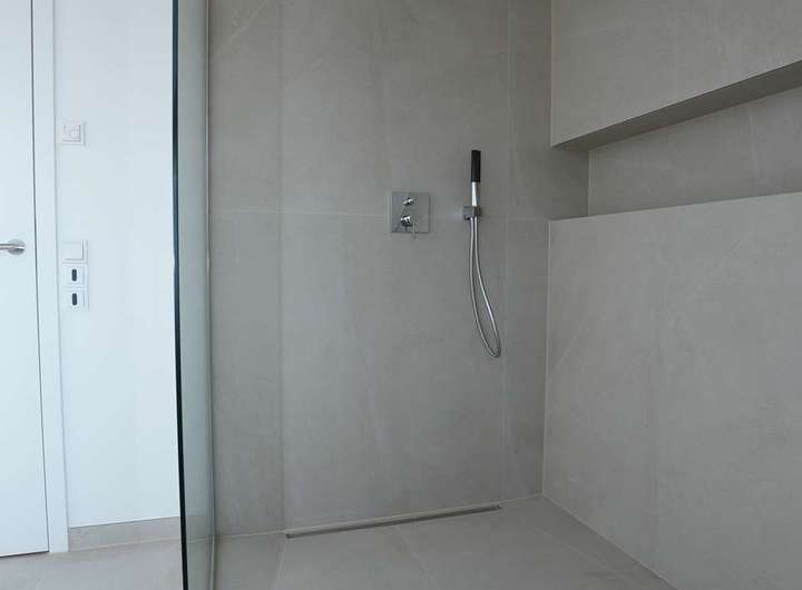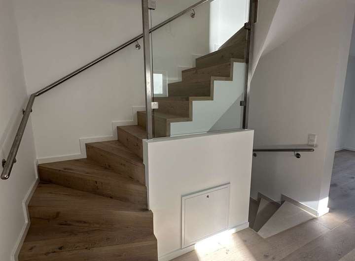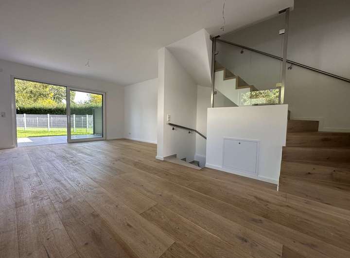 Der Keller ist als weiße Wanne im Stahlbeton errichtet. Die Aussenwände ab Erdgeschoss sind im Mauerwerk errichtet. Die Gebäudetrennwände wurden in Porenbetonsteinen ausgeführt. Der homogene Aufbau der Außenwände im Porenbetonstein ist eine nachhaltige und hochwertige Konstruktion.Die Wände sind aus schallschutztechnischen Gründen als Kalksandsteinmauerwerk ausgeführt. Die Dachkonstruktion wurde als Sparrendach mit Zwischensparrendämmung und zusätzlicher Aufsparrendämmung ausgeführt, dieses sorgt für einen positiven Hitzeschutz im Sommer. Als Dacheindeckung wurden Ziegelsteine in Anthrazit verwendet. Nutzräume im Keller sowie Bäder sind mit einem großformatigem Feinsteinzeug belegt. Nahezu alle Räume verfügen über einen Netzwerkanschluss sowie Breitbandanschluss. Mittels Switch im Medienverteiler ist eine schnelle Netzverbindung herzustellen. Das Schalterprogramm ist vom Hersteller Merten, Sprech-bzw. Klingelanlage mit Videofunktion. Alle Wohnräume sind mit einer Fußbodenheizung ausgestattet. Die Steuerung lässt sich in jedem Raum regulieren. Heizung und Warmwasseraufbereitung wird von einer Wärmepumpe der Firma Daikin betrieben. Pläne und Baubeschreibung erhalten Sie auf Wunsch übersandt.