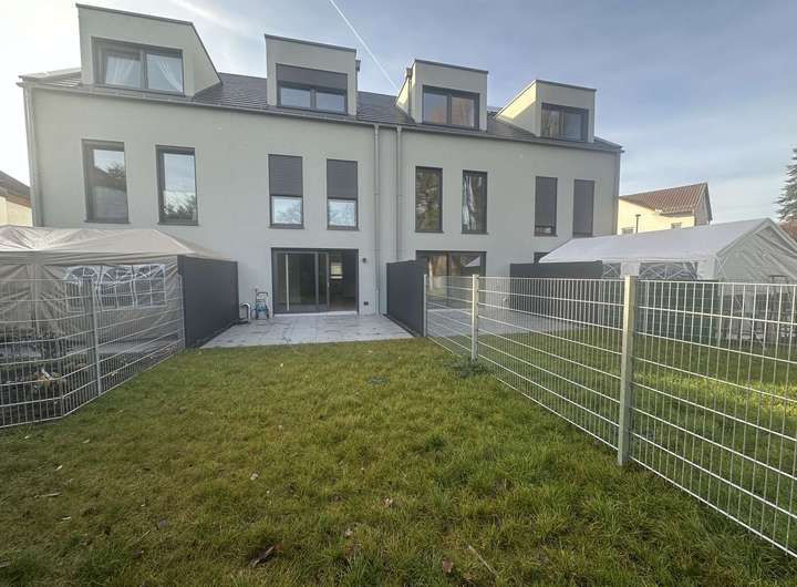 Mit A+ und 23kWh haben Sie einen erstklassigen Energiewert der sich bei den Nebenkosten positiv bemerkbar macht. Sie schauen ins Grüne aber alles ist auch zu Fuß schnell erreichbar. Die Terrasse liegt ruhig und bietet auch der großen Familie genügend Platz in den Sommermonaten. Im Untergeschoss haben Sie einen Fitnessraum, im Erdgeschoss Küche, Diele, Gäste WC und einen tollen Wohn/Essbereich mit Ausgang in den Garten. Im Obergeschoss finden Sie zwei große Schlafzimmer und ein Badezimmer vom feinsten. Im bestens isolierten Dachgeschoss haben Sie neben einem kompletten Badezimmer mit bodengleicher Glas- Dusche, Toilette, Spiegel ein weiteres großzügiges Studio mit einem separaten Arbeitsplatz. Zwei Stellplätze für Autos können für € 20.000.00 dazu gekauft werden. Einfach anrufen und eine Besichtigung verlangen.