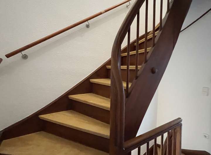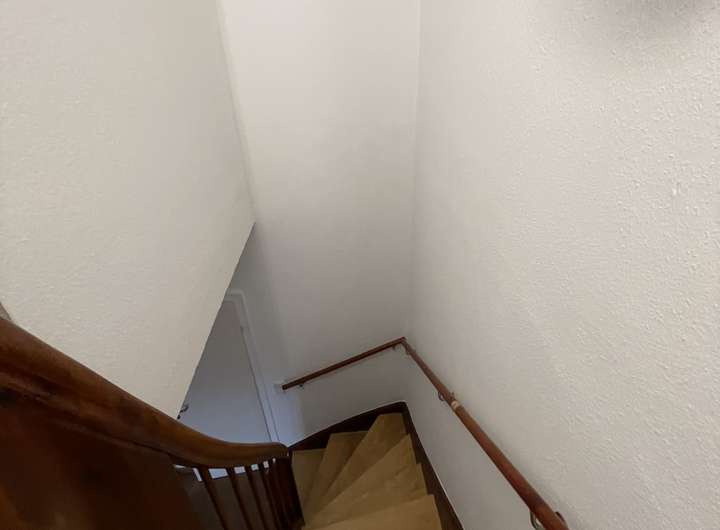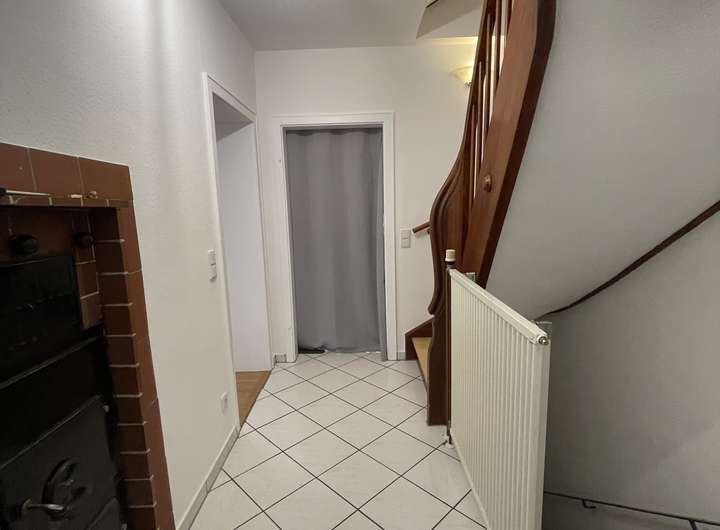 Das Haus wurde komplett renoviert. Das heißt neu gestrichen, derzeit wird noch ein neuer Dielenboden im gesamten Obergeschoss eingebaut sowie zwei neue Dachfenster. Was ich persönlich sehr schön und wohnlich finde ist der Holzkachelofen im Wohnzimmer mit eingebauten Lüftungsströmungen im Flur., welcher die Wärme regelt. Dieser heizt