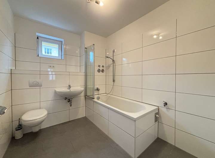 Das Tageslichtbad verfügt über eine Badewanne, Handtuchheizkörper sowie einem Waschmaschinenanschluss.