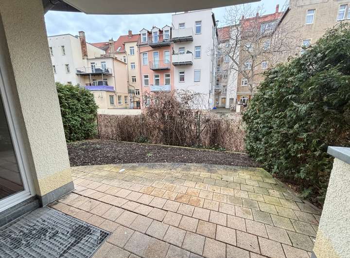 Der ruhig gelegene Terrasse ist über das Wohnzimmer und Schlafzimmer erreichbar.
