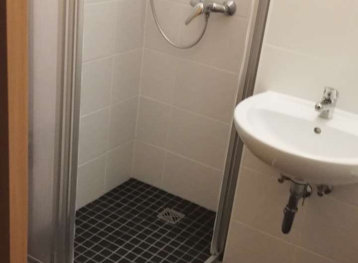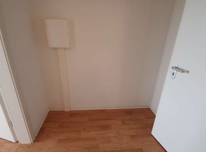 Die Wohnung befindet sich in der 6. Etage. Der Flur bietet Platz für einen Kleiderschrank. Von hier aus ist das innenliegende Bad mit ebenerdiger Dusche errechbar. Die Wohnung liegt zur Nordseite und hat keinen Balkon.