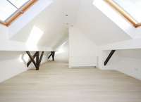 Ein zusätzlicher, flexibel nutzbarer Raum kann als Gästezimmer, Büro oder Hobbyraum dienen und unterstreicht die vielseitigen Verwendungsmöglichkeiten dieser Wohnung. Die obere Etage beherbergt ein weiteres Schlaf- und Badezimmer.