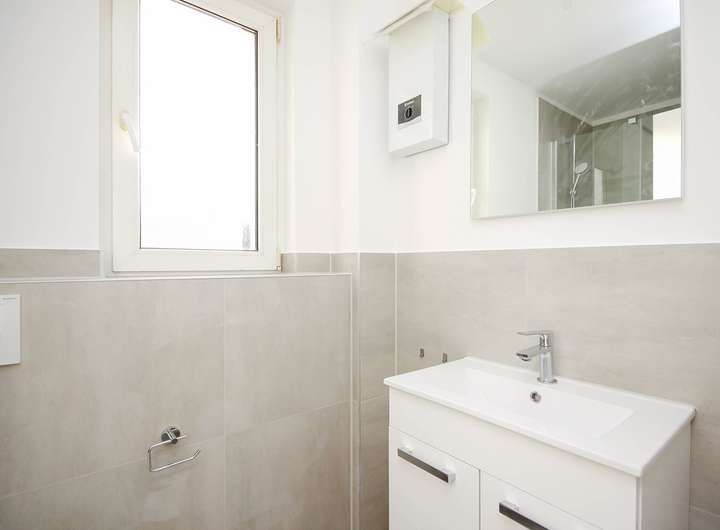 Das Raumkonzept wird durch zwei vollwertige Badezimmer abgerundet, die sich jeweils auf eine der Wohnetagen verteilen.
