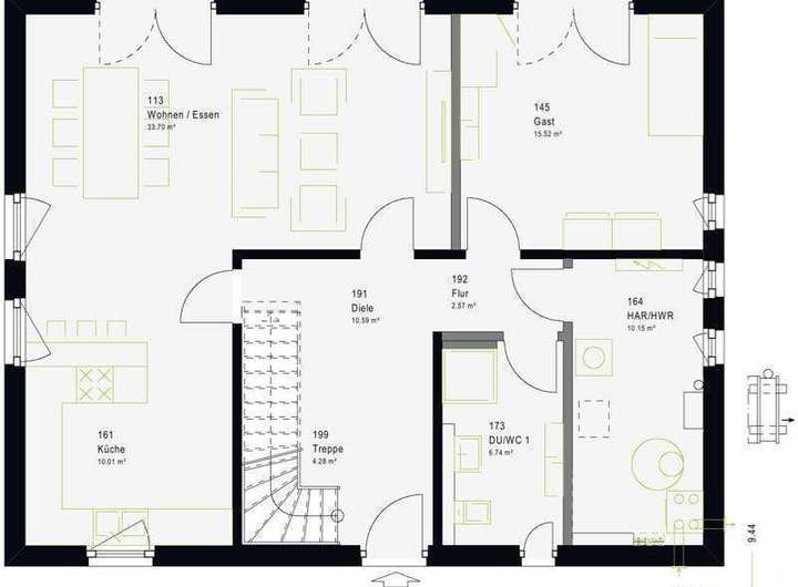 Das Angebot beinhaltet das Ausbauhaus inkl. Technikpaket als KfW 40 Niedrigenergie-Effizienzhaus inklusive: